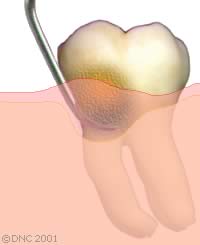 - Scaling and root planing (deep cleaning) to remove the plaque and tartar buildup which adheres to the root surface below the gum line. This procedure is not a surgery, but rather a very thorough cleaning (compared to the habitual more superficial cleanings). It is done mainly under local anesthesia (freezing) and usually requires 2 to 4 appointments. Special instruments are used below the gum line to remove soft and hard deposits from the tooth surface. Deep cleaning removes the irritants from the root surface but it does not eliminate deep pockets, so it maybe have to be done more than once.
